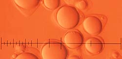 Es gibt tausende von diesen organischen thermochromen "Farbstoffen", chemische Cocktails mit temperaturabhängigen Gleichgewichtszuständen. Um sie zusammenzuhalten und "gefahrlos" in unserer Umwelt als Farbstoff verwenden zu können, werden davon winzige Tröpfchen in Mikrokapseln eingeschlossen und können in entsprechenden "Lösungs"-Mitteln wie eine normale Farbe verwendet werden.![]() Die Mikrokapseln sind zwar recht klein (3-5 microns), aber die kleinsten sind immer noch 10 Mal größer als normale Pigmente. Werden sie undicht, können sie allerlei Schwierigkeiten machen. Die Haltbarkeit liegt im Jahresbereich, bei Zimmertemperatur und im Dunkeln. Im kühlen Zustand zeigen sie Farbe, um bei Erwärmung durchsichtig zu werden. Mischt man sie mit normalen Pigment-Farbstoffen, sind die schönsten Farbübergänge machbar. Soll z. B. auf einer Tasse beim Eingießen heißer Flüssigkeit ein Bild erscheinen, druckt man über das Bild eine Schicht thermochromen Farbstoff. Soll es verschwinden, muss das Bild komplett aus entsprechenden thermochromen Farbstoffen bestehen. Mischt man beide Techniken, sind die schönsten Effekte erreichbar. |