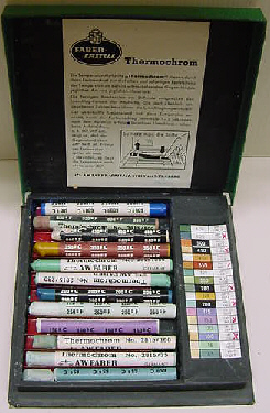 | Als Zeichenstifte zur Temperaturbestimmung und in Form von Temperaturlacken. | ![]() |
