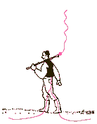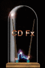 | Zwischen zwei Elektroden, die nach oben leicht auseinander gehen, züngeln Blitze von unten nach oben und reißen dort ab. Ein beliebtes Zubehör in Frankenstein-Filmen. | ![]() |