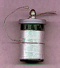| Mit der Leydener Flasche konnte erstmals elektrische Ladung gesammelt, verstärkt, aufbewahrt und transportiert werden. Die aufgenommene Ladung kann sehr groß (und lebensgefährlich!) werden. Sie sollte nur ! mittels eines Drahtes mit einem isolierenden Griff entladen werden. | ![]() |
