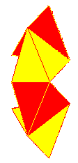 Um einen Simplex falten zu können, hefte man 3 weitere, "passende" Dreiecke daran, schneide das Ganze aus, falte es an den Linien und klebe es zusammen.