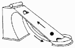 Der einfachste Magnetmotor stammt wohl von Johann Tausnerius, der im Jahr 1562 das Buch "Opusculum perpetua memoria dignissimum de natura magnetis et eius effectibus" veröffentlichte. Der Magnet zieht eine Eisenkugel die Rampe empor bis zu einem Loch, durch das sie dann wieder nach unten fällt und das Spiel von neuem beginnen kann. |