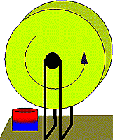 | Einfach und lehrreich ist nebenstehendes Perpetuum mobile: ein Magnet unterhalb eines drehbaren Eisenzylinders. Da nur eine Seite des Zylinders angezogen wird, sollte er sich in Bewegung setzen. | ![]() |