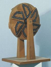 Experimente zeig(t)en: egal welche Gewichte am Rad befestigt werden, eine ewige Bewegung wird nicht erreicht. | ![]() |