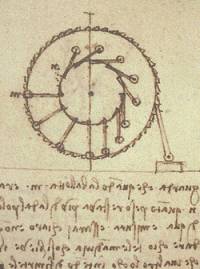 | So um 1500 herum beschäftigte sich kein geringerer als Leonardo da Vinci mit Perpetua mobilia, deren Unmöglichkeit er zu beweisen versuchte. Hier zwei Zeichnungen aus seinem Codex Forster II. und deren Nachbauten: |