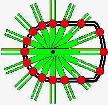 | Anstelle von Quecksilber sind hier Kugeln verwendet. | Ein Riesenrad mit Kugeln an Fäden. | |