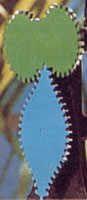 | Schneidet man aus einem möglichst unverknittertem Teil einen Streifen heraus und legt ihn auf die Hand, beginnt er ein seltsames Eigenleben zu entwickeln: er biegt und krümmt und windet sich. In Form eines Lebewesens, und in Farbe, ist das Ganze noch beeindruckender. | ![]() |