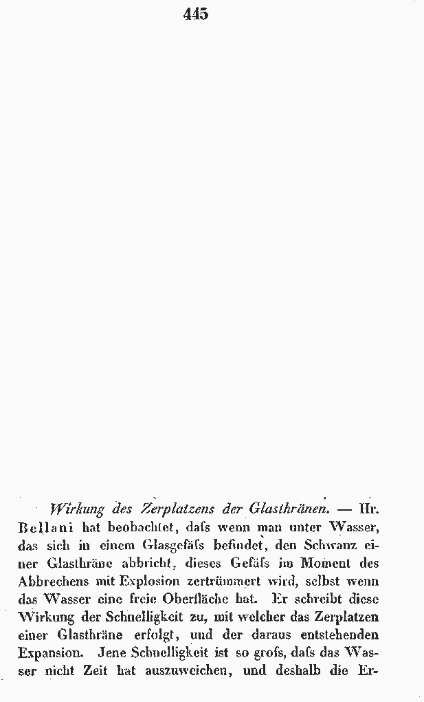 1833 Bellani Wirkung des Zerplatzens der Glasthränen Annalen der Chemie und Physik 104 (2-28) 445 446