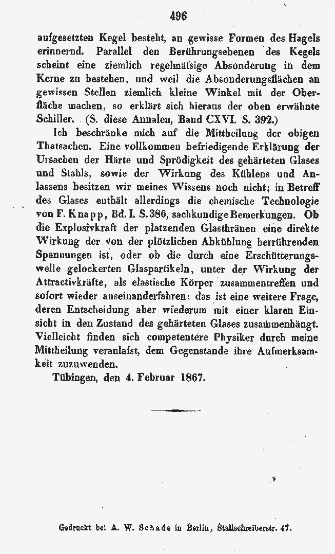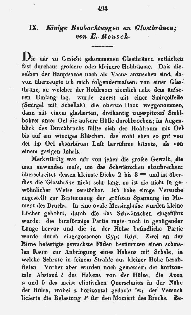1867 Reusch Einige Beobachtungen an Glasthränen Annalen der Chemie und Physik 206 (2-130) 494 495 496