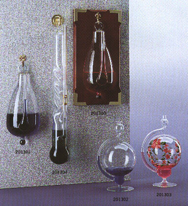 | Ein Instrument dieser Art wurde nach Goethes Tod 1832 in seinem Besitz gefunden. Es ist knapp halbvoll mit einer möglichst schwer verdunstenden Flüssigkeit gefüllt und muss sich an einem Ort möglichst konstanter Temperatur befinden (ein Thermometer neben dem Barometer ist hilfreich). Bei steigendem Luftdruck sinkt der Flüssigkeitsspiegel im Gefäßhals und umgekehrt. Bei steigender Temperatur steigt die Flüssigkeit per Dampfdruck und umgekehrt. Ein Goethe-Barometer ist alles andere als genau, aber ein reizvoller Zimmerschmuck. Flüssigkeit kann aus dem Gefäßhals überlaufen, wenn Luftdruck- und Temperaturänderungen ungünstig zusammenspielen. |