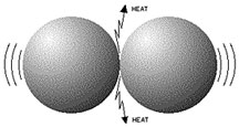 | Wenn zwei sehr schwere Stahlkugeln aufeinander prallen, wird genügend Wärme frei, um in ein dazwischen gehaltenes Blatt Papier ein Loch zu brennen! | ![]() |
