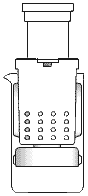 | Um eine präzise Ziehzeit zu erreichen, leert sich die Klepshydra gegen Ende sehr rasch. Ein Schwimmer, der bislang einen Stöpsel gegen eine große Öffnung im Boden gezogen hat, sinkt herab, die Öffnung wird frei und ein Schwall des restlichen Gewichtswassers fließt aus. Der Tee samt Sieb und leerer Klepsyhdra taucht nun recht rasch (!) auf. Ein verblüffender Anblick. | ![]() |