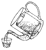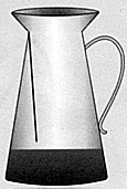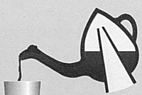 Diese Kanne kann mehrfach geleert werden. Nach jedem Aufrichten ist wieder etwas darin enthalten. In der Kanne befindet sich ein zweiter verschließbarer Behälter, der am Boden ein großes Loch hat, dass dem Henkel der Kanne zugewandt ist. Beim (geheimen) Füllen öffnet man den zweiten Behälter. Dann wird er verschlossen und der Deckel auf die Kanne gesetzt. Jetzt ist die Zauberkanne vorführbereit! Nach jedem Absetzen der Kanne fließt etwas aus dem inneren Behälter in den äußeren Teil der Kanne nach, und nur dies wird jeweils ausgegossen. |
