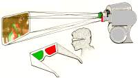 1853 entwickelt der Naturwissenschaftler Wilhelm Rollmann das Anaglyphenverfahren (Anaglyph = reliefartig, ziseliert, erhaben), und (unabhängig von Rollman) 1858 J. Ch. D'Almeida. Jedes Halbbild wird jeweils mit einer Komplementärfarbe übereinander projiziert oder gedruckt und mit einer Brille in genau diesen Farben betrachtet.