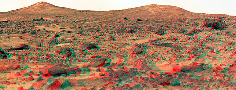 Mit dem linken Auge sieht man nur nur das grüne(linke) Bild, mit dem rechten Auge nur das rote(rechte) Bild. Der Vorteil dieses Verfahrens ist, dass der Betrachtungsabstand beliebig ist und die Brillen einfach und billig herstellbar sind. Allerdings können keine Farbaufnahmen dargestellt werden, es funktioniert nur in schwarz-weiß und auch nicht ganz vollständig, da der rote Filter immer auch etwas Grün durchlässt und umgekehrt. Das Betrachten der Bilder ist nach einiger Zeit sehr ermüdend, es flimmert vor Augen und kann zu Kopfschmerzen führen. Sehr beliebt ist diese Methode in Mathematiklehrbüchern, um Stereometrie oder sphärische Trigonometrie zu illustrieren.