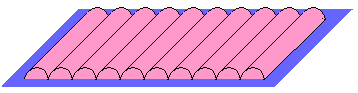 | Legt man nun viele Zylinderlinsen auf dieses Stereogramm, so entsteht bei geschickter Anordnung und einem bestimmten Betrachtungsort ein Raumbild. Jedes Auge sieht dank der unterschiedlichen Betrachtungswinkel immer nur die Streifen eines zusammengehörenden Halbbildes. Dieses Verfahren hat zwar den großen Vorteil, dass die Bildbetrachtung ohne zusätzliche Hilfsmittel möglich ist und auch Farbbilder angeschaut werden können, jedoch ist dieses Verfahren technisch sehr aufwendig. |