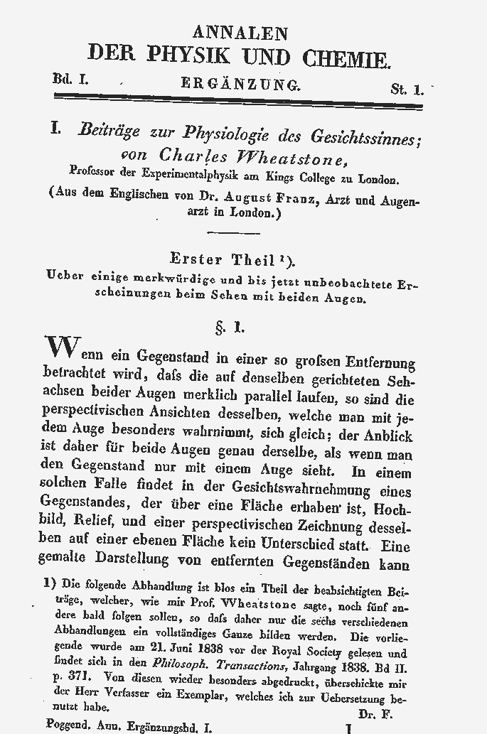 1838 Wheatstone Beiträge zur Physiologie des Gesichtssinnes Annalen der Physik und Chemie, Ergänzungsband 1842 1 2 3 4 5 6 7 8 9 10 11 12 13 14 15 16 17 18 19 20 21 22 23 24 25 26 27 28 29 30 31 32 33 34 35 36 37 38 39 40 41 42 43 44 45 46 47 48 Tafel1 Tafel2