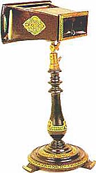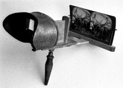 1849 konstruierte Sir David Brewster, ebenfalls ein Engländer, einen Betrachtungsapparat, der im Gegensatz zum Wheatstonschen Stereoskop bequem in der Hand gehalten werden konnte. Es war ein Holzkasten bei dem man durch zwei optische Linsen auf die beiden gegenüberliegenden Fotografien schaute. Der Fokus auf die Halbbilder wird ins Unendliche verlängert.