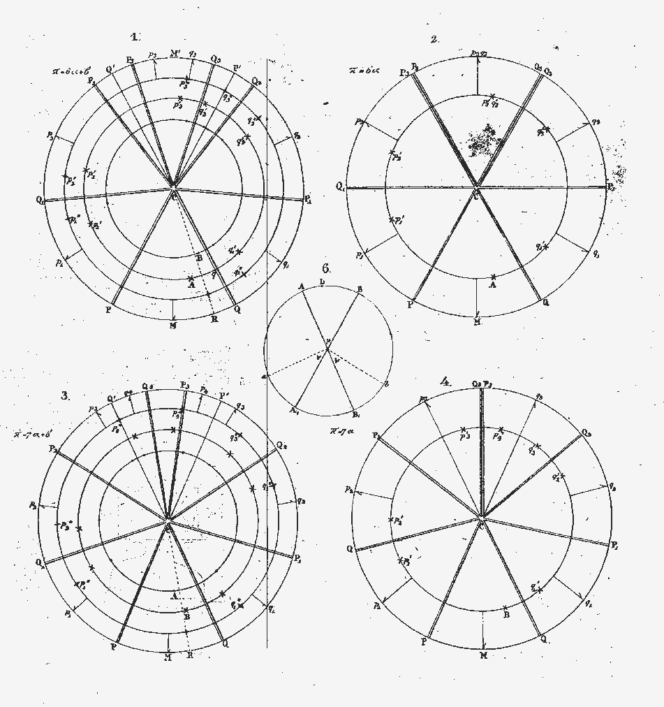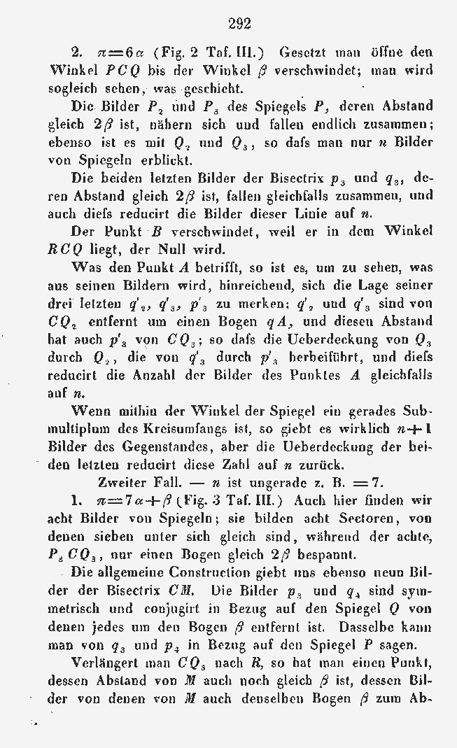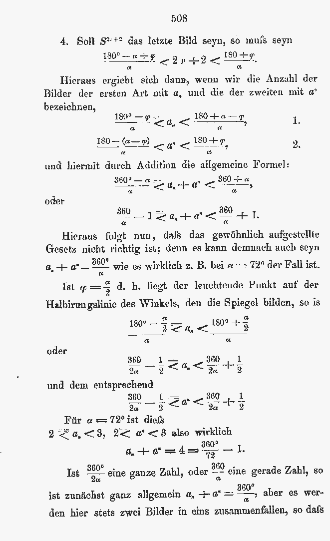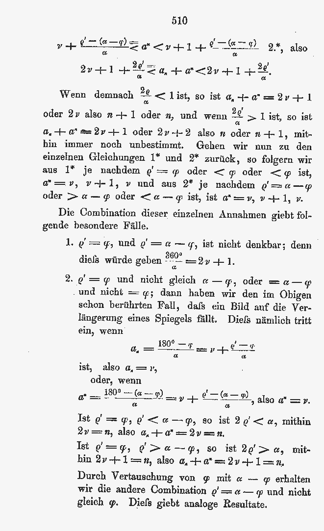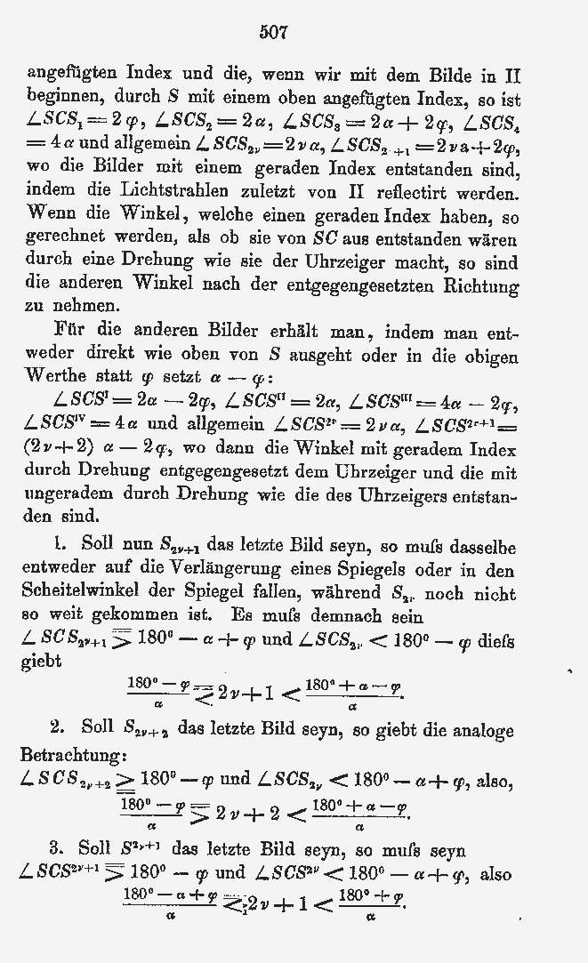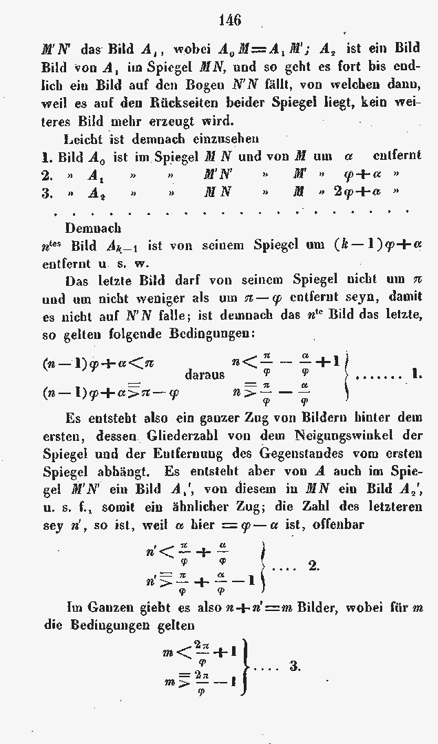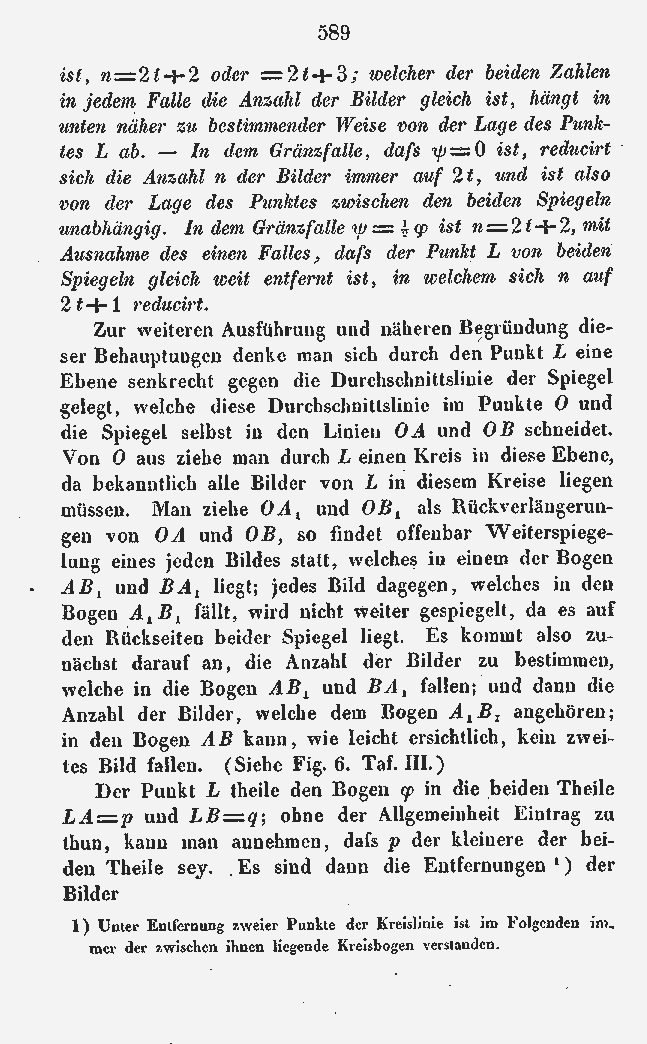 | 1851 | Gallenkamp | Ueber die Anzahl der Bilder eines leuchtenden Punktes zwischen zwei geneigten ebenen Spiegeln | Annalen der Physik und Chemie 158 (2-82) | 588 589 590 591 592 593 Bild |
