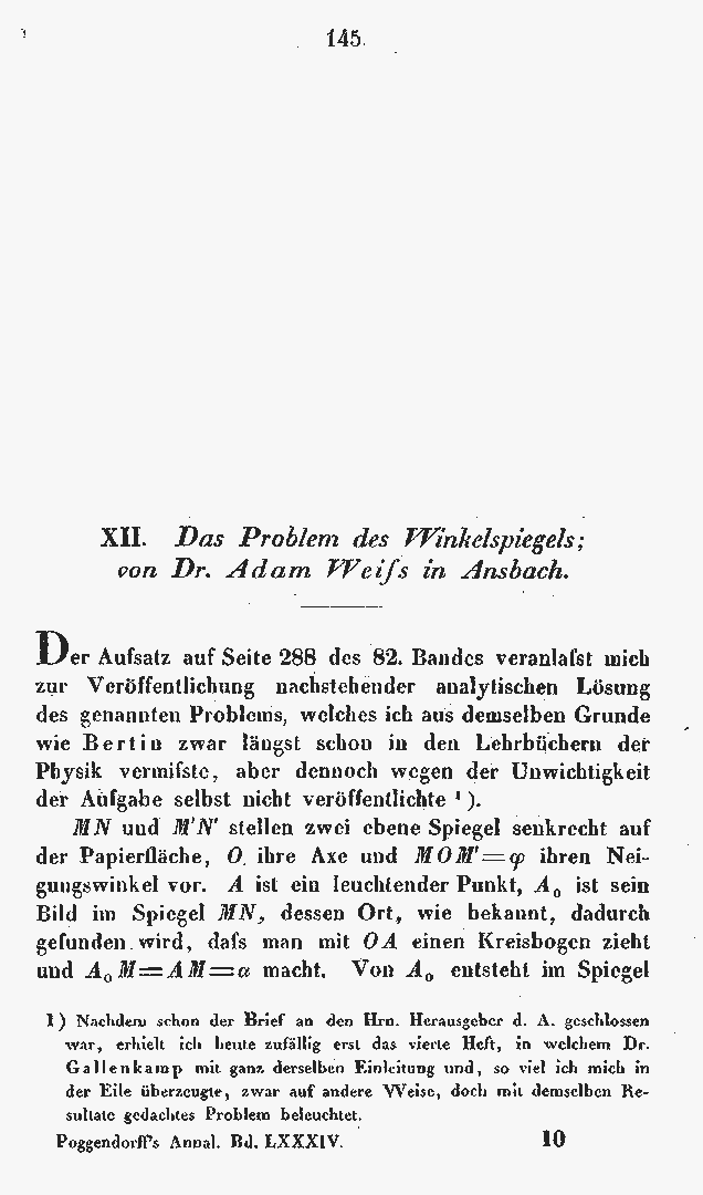 | 1851 | Weiß | Das Problem des Winkelspiegels | Annalen der Physik und Chemie 160 (2-84) | 145 146 147 148 |
