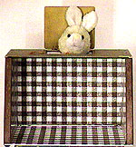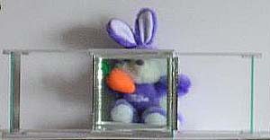| Diese Spiegelanordnung ermöglicht einen freien Blick auf das wirklich reizende Häschen, obwohl eigentlich zwei Äpfel die Sicht versperren.