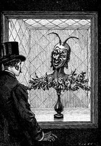 Ein lebendiger Kopf auf einem Tischchen. Spiegel können Dinge verbergen, allerdings muss die Umgebung entsprechend angepasst sein. In diesem Fall sollte der Fußboden nahtlos in sein Spiegelbild übergehen. Oder umgekehrt...: oder so: ![]() |