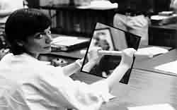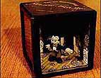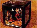 Ein Kästchen mit zwei Fenstern über Eck zeigen zwei verschiedene Inhalte! Ein Fenster zeigt Mickey in schwarzweiß mit den Füßen auf dem Boden, das andere einen bunten Mickey, der gerade vor Freude hochspringt. Ein diagonal angebrachter doppelseitiger Spiegel und 2 halbe Mickeys machen das Kunststück möglich. ![]() |