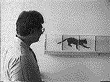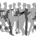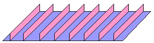 | Viel besser ist eine streifenförmige Anordnung von Zylinderlinsen auf einem Linienrasterbild. Je nach Blickrichtung zeigen die Linsen verschiedene Streifen des Bildes, die mehr oder wenig raffiniert angeordnet Wackelbildchen für Kinder ergeben oder 3-D-Ansichten zeigen (beim beidäugigen Sehen ist die Blickrichtung der Augen verschieden). | ![]() |