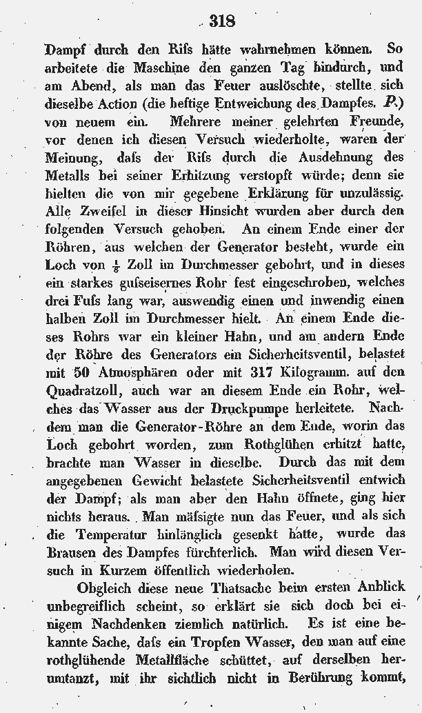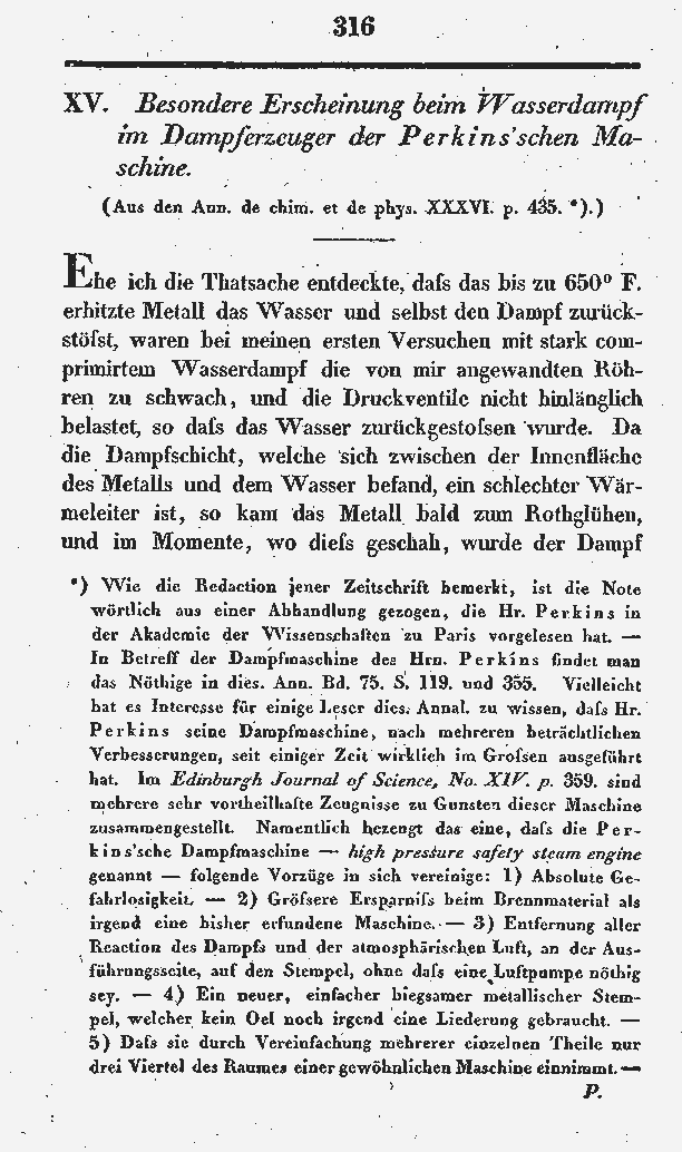 1828 Perkins Besondere Erscheinung beim Wasserdampf im Dampferzeuger der Perkins'schen Maschine Annalen der Physik und Chemie 88 (2-12) 316 317 318 319