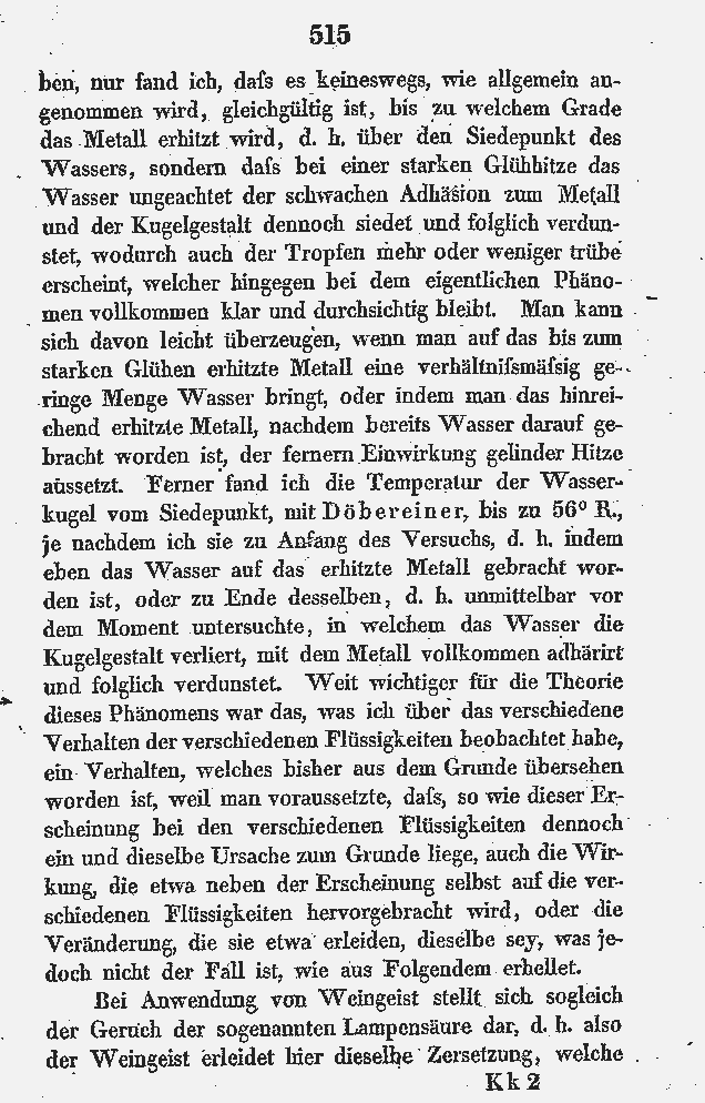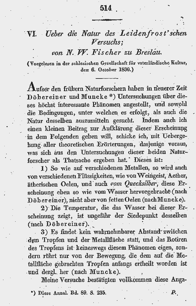 1830 Fischer Ueber die Natur des Leidenfrost'schen Versuchs Annalen der Physik und Chemie 95 (2-19), 514 515 516 517
