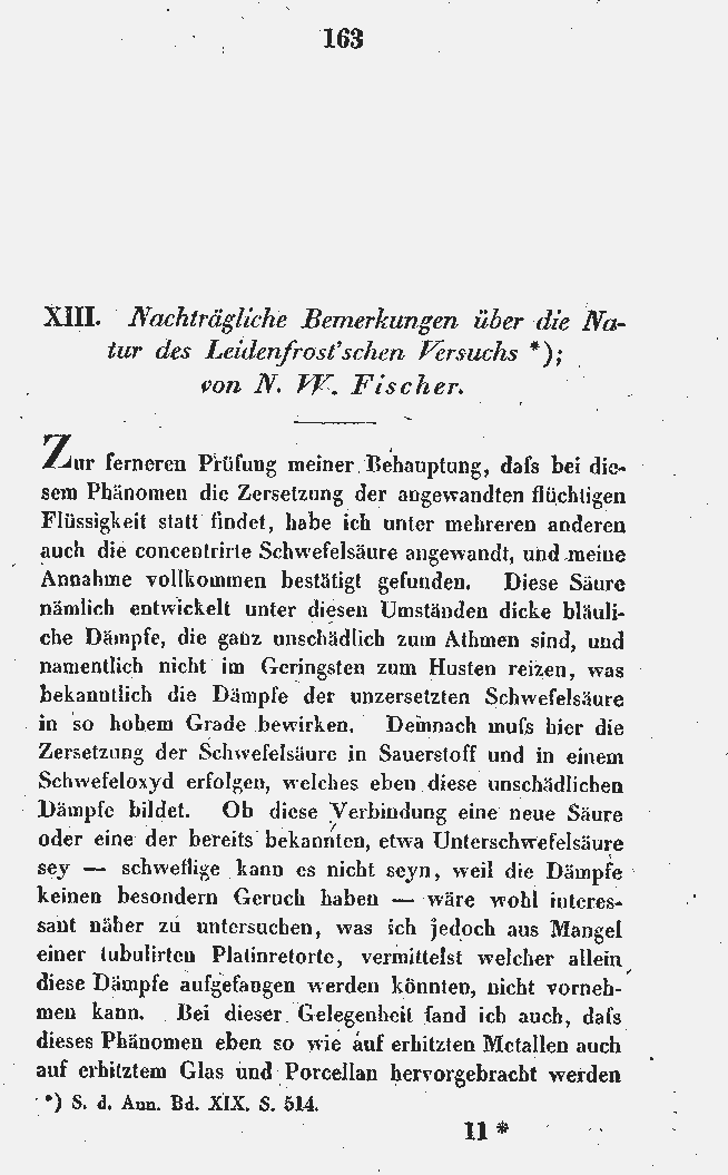 1831 Fischer Nachträgliche Bemerkungen über die Natur des Leidenfrost'schen Versuchs Annalen der Physik und Chemie 97 (2-21) 163 164