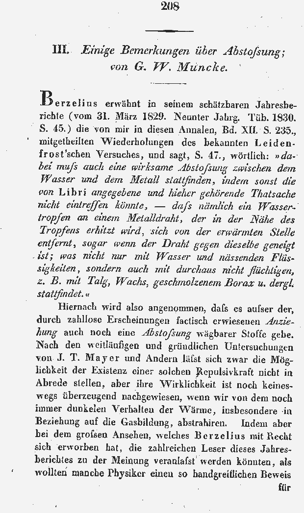 1831 Muncke Einige Bemerkungen über Abstoßung Annalen der Physik und Chemie 98 (2-22) 208 209 210