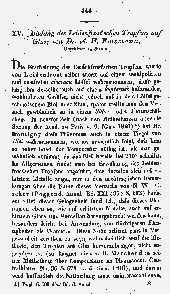 1840 Emsmann Bildung des Leidenfrost'schen Tropfens auf Glas Annalen der Physik und Chemie 127 (2-51) 444 445