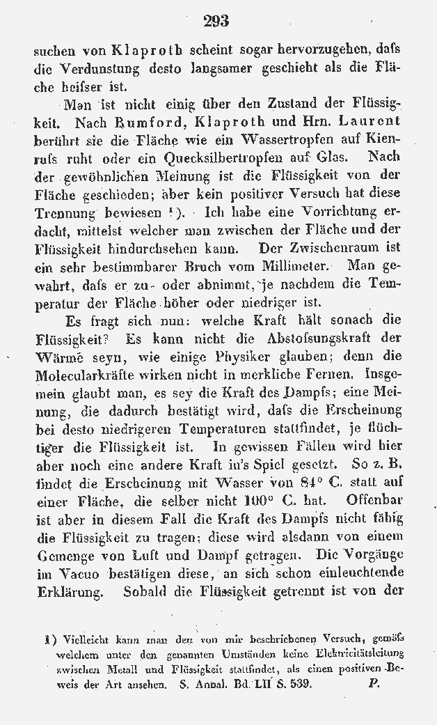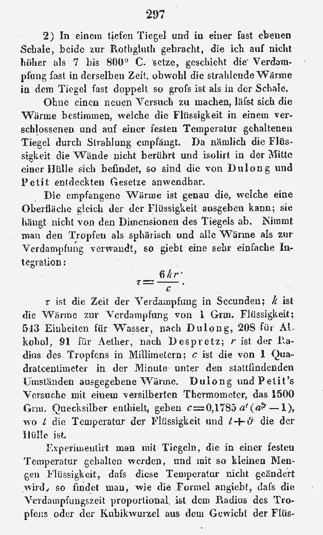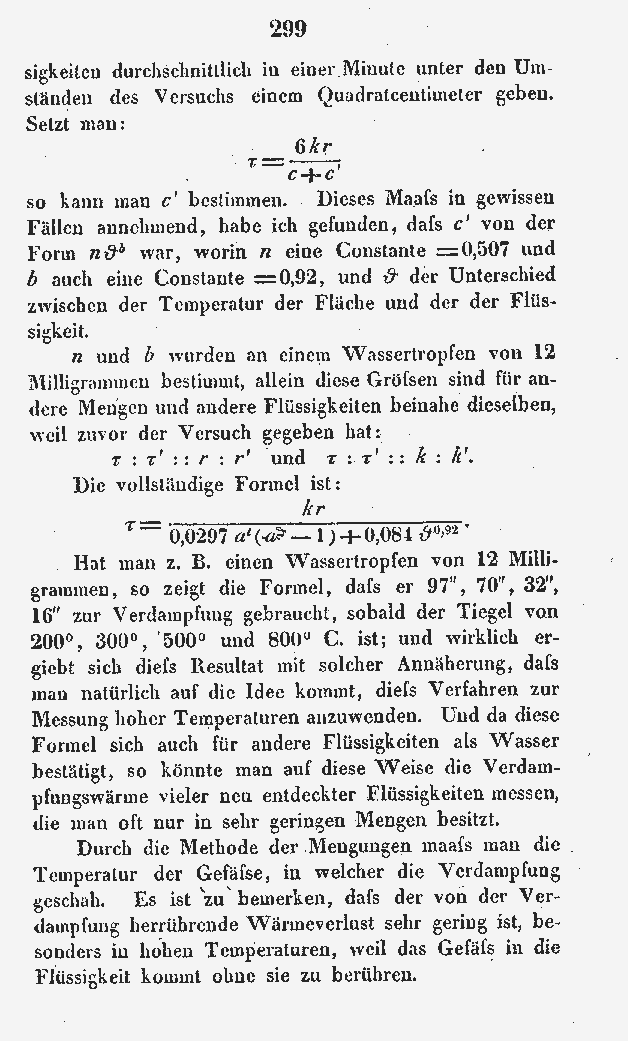 1842 Person Ueber die Langsamkeit der Verdampfung in glühenden Gefäßen Annalen der Physik und Chemie 133 (2-57) 292 293 294 295 296 297 298 299 300