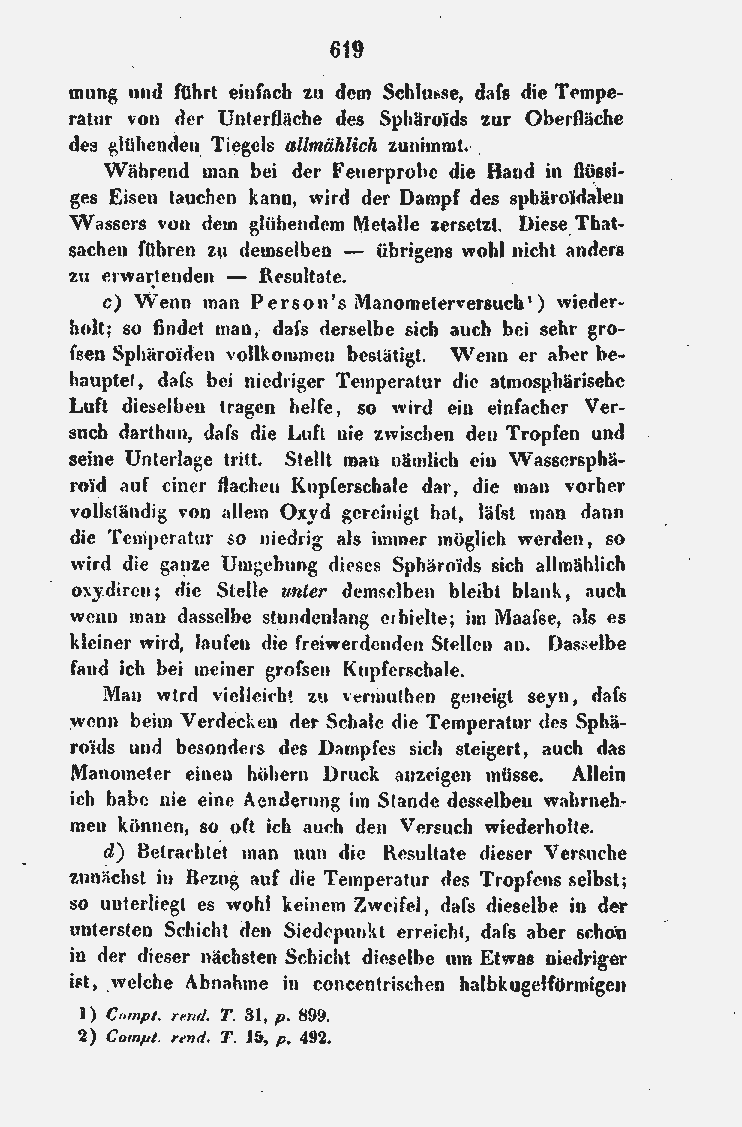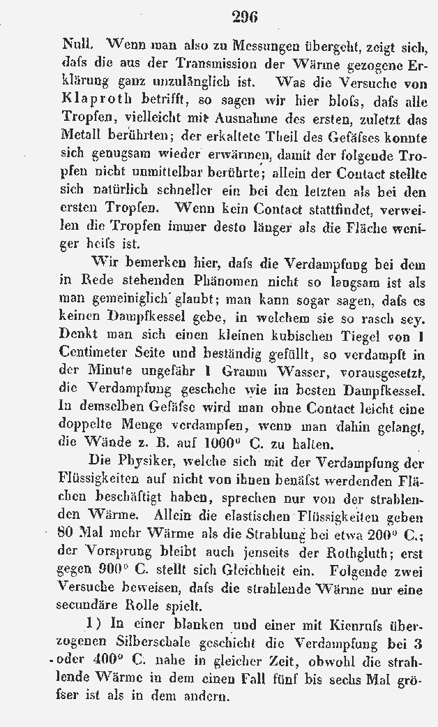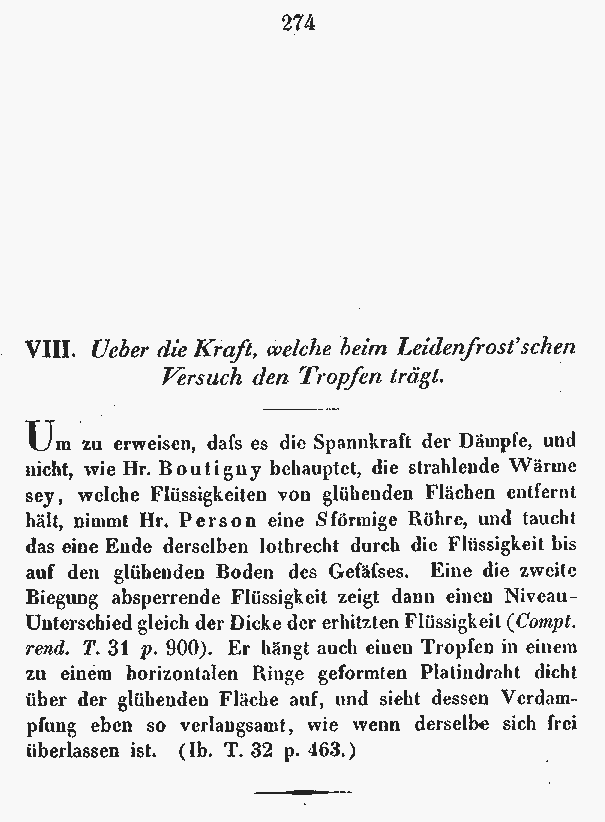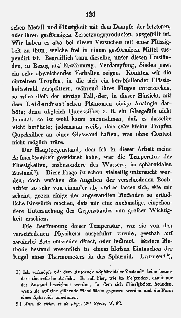 1851 Person Ueber die Kraft, welche beim Leidenfrost'schen Versuch den Tropfen trägt Annalen der Physik und Chemie 160 (2-84) 274