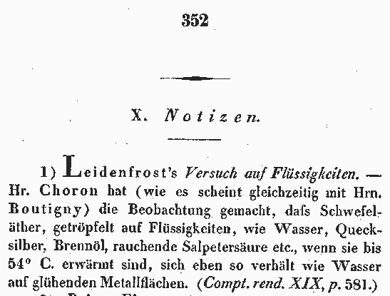 1844 Choron Leidenfrost's Versuch auf Flüssigkeiten Annalen der Physik und Chemie 139 (2-63) 352