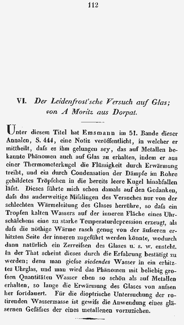 1847 Moritz Der Leidenfrost'sche Versuch auf Glas Annalen der Physik und Chemie 148 (2-72) 112