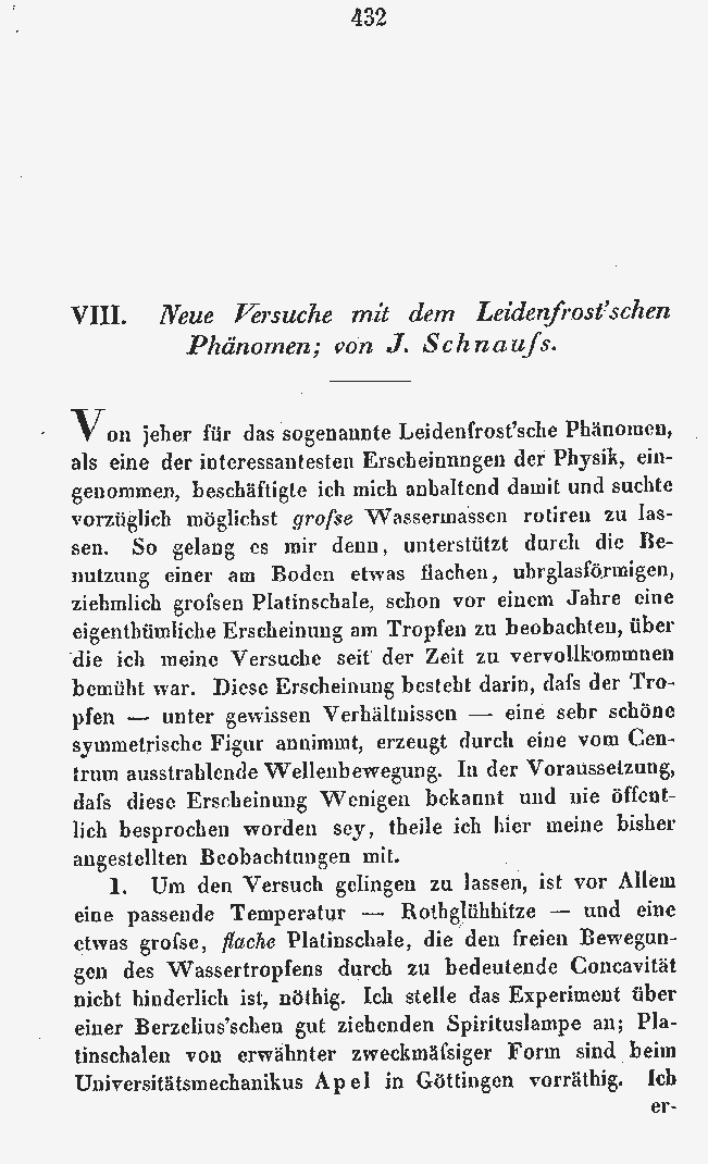1850 Schnauß Neue Versuche mit dem Leidenfrost'schen Phänomen Annalen der Physik und Chemie 155 (2-79) 432 433 434 435 436 437