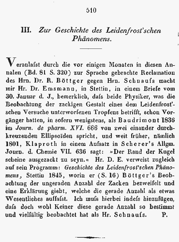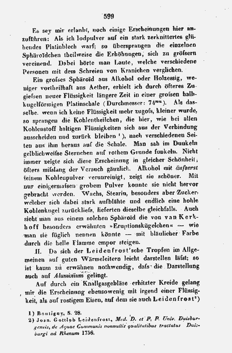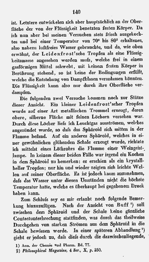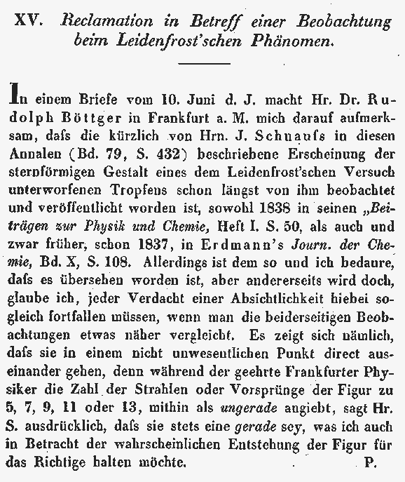 1850 Böttger Reclamation in Betreff einer Beobachtung beim Leidenfrost'schen Phänomen Annalen der Physik und Chemie 157 (2-81) 320