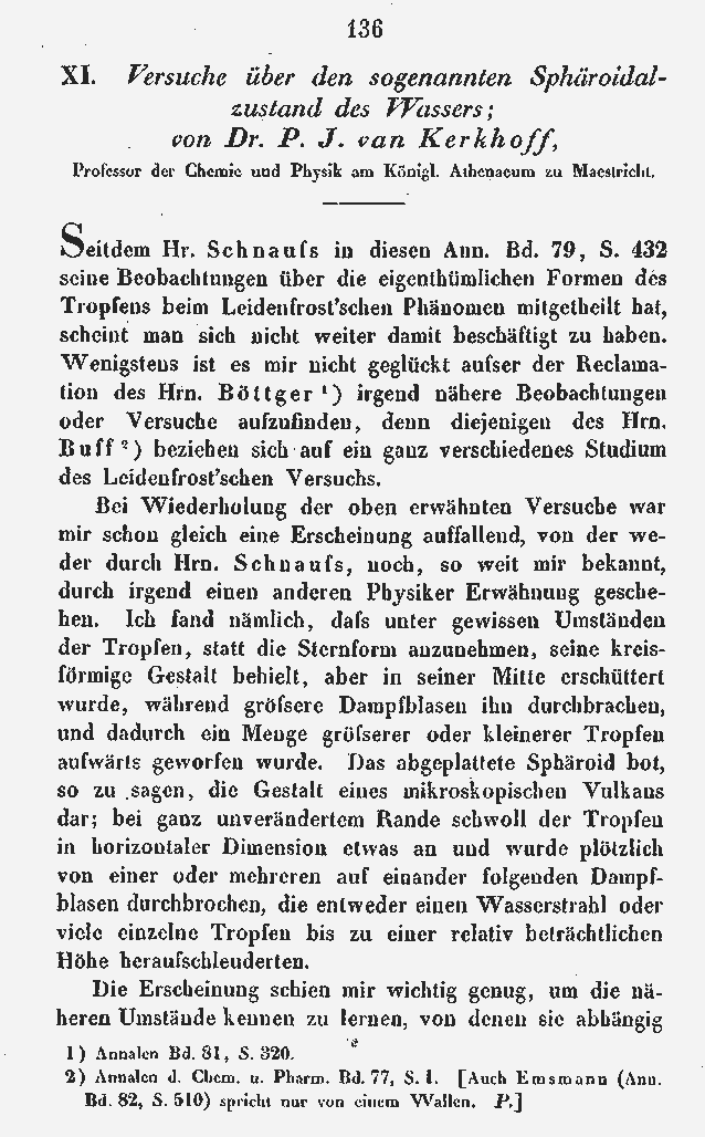 1851 Kerkhoff Versuche über den sogenannten Sphäroidalzustand des Wassers Annalen der Physik und Chemie 160 (2-84) 136 137 138 139 140 141 142 143 144 145