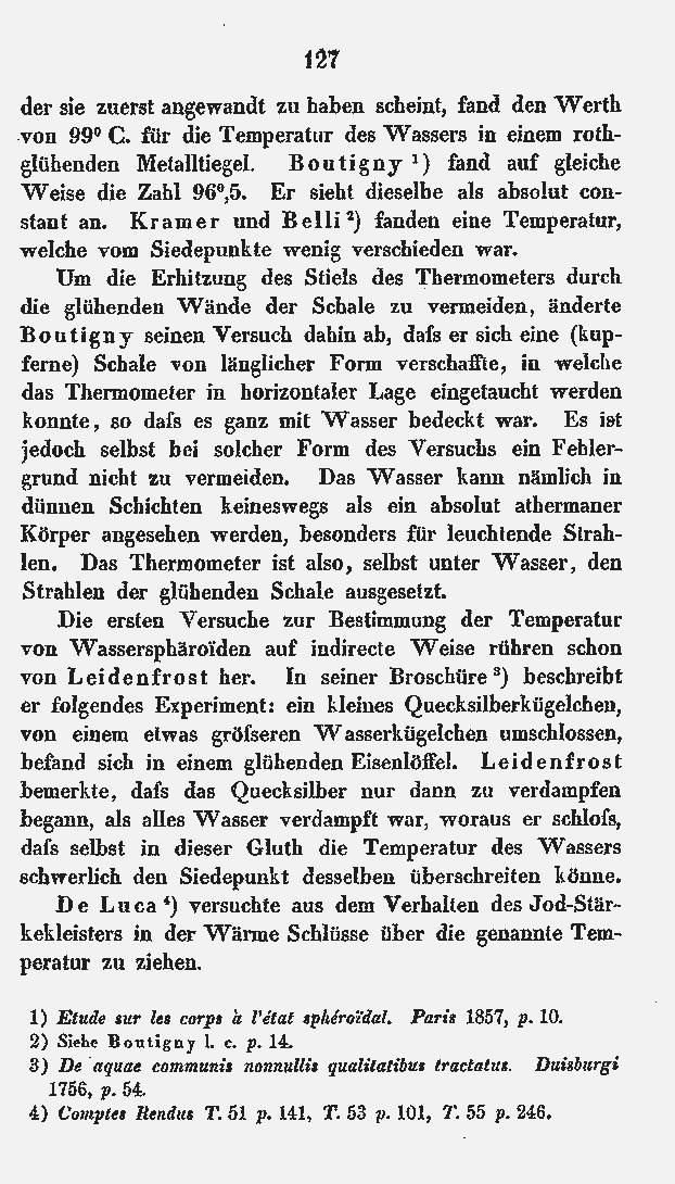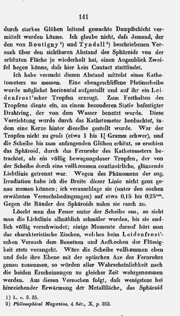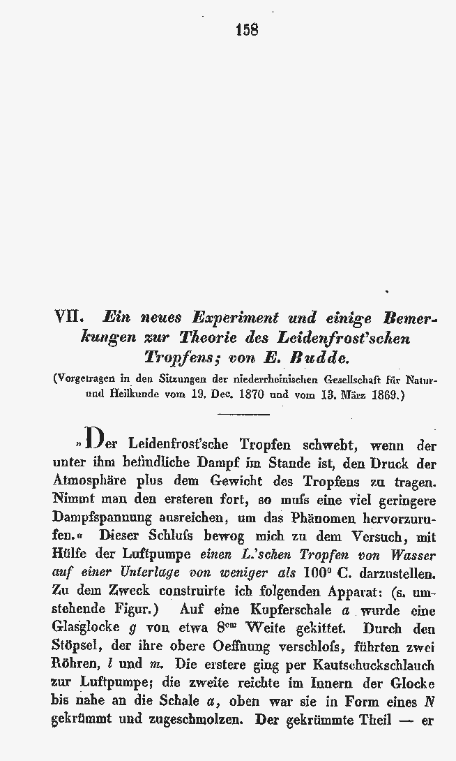 1871 Budde Ein neues Experiment und einige Bemerkungen zur Theorie des Leidenfrost'schen Tropfens Annalen der Physik und Chemie 218 (2-142) 158 159 160 161 162 163