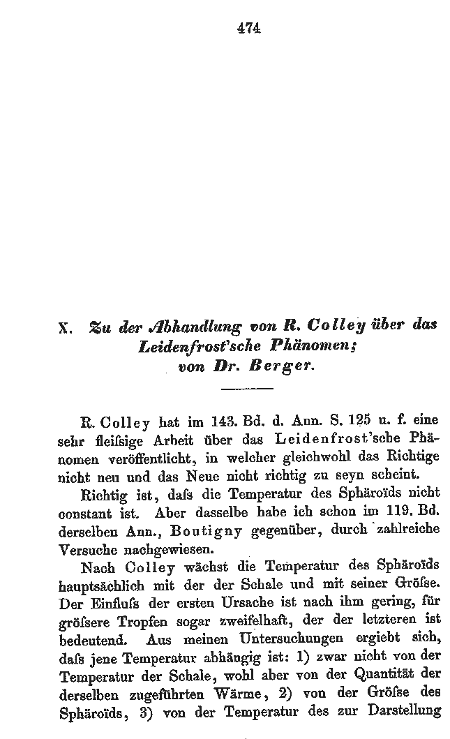 1872 Berger Zu der Abhandlung von R. Colley über das Leidenfrost'sche Phänomen Annalen der Physik und Chemie 223 (2-147) 474 475 476 477 478