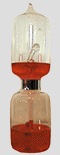 | Mit diesem Instrument können weder Liebe noch Temperatur oder Temperament bestimmt werden. Der englische Ausdruck "handboiler" trifft am ehesten, auch wenn damit keine Hände gekocht werden können. Aber wenn man das untere Glasgefäß mit der Hand umfasst und erwärmt, steigt die Flüssigkeit nach oben und beginnt im oberen Teil zu brodeln. Wird der obere Teil wärmer als der untere, fließt sie wieder zurück. | ![]() |